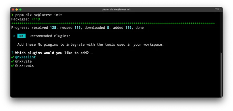 on an existing npm/yarn/pnpm workspace, you'll also get asked about installing plugins based on the setup you have in your monorepo.